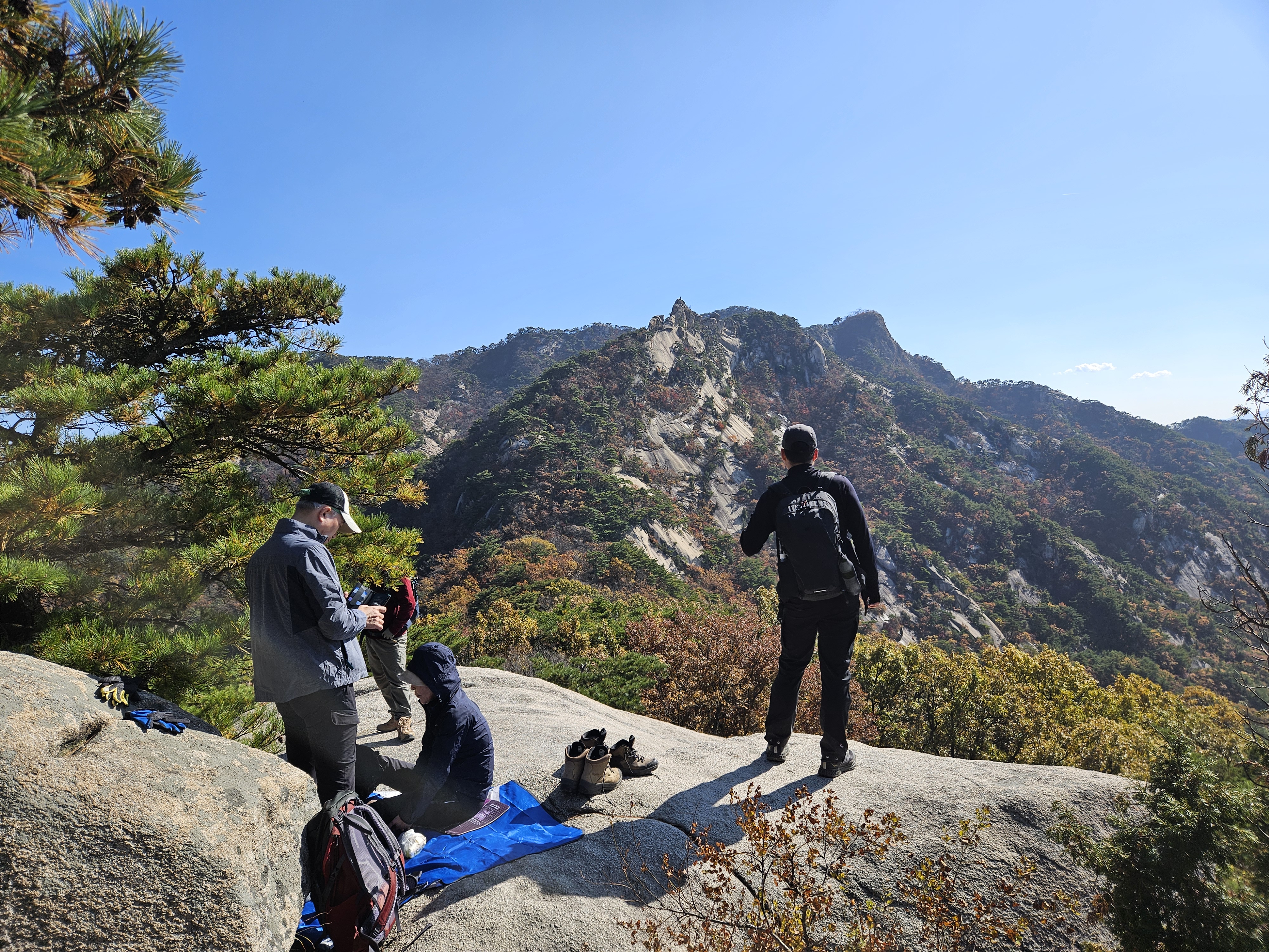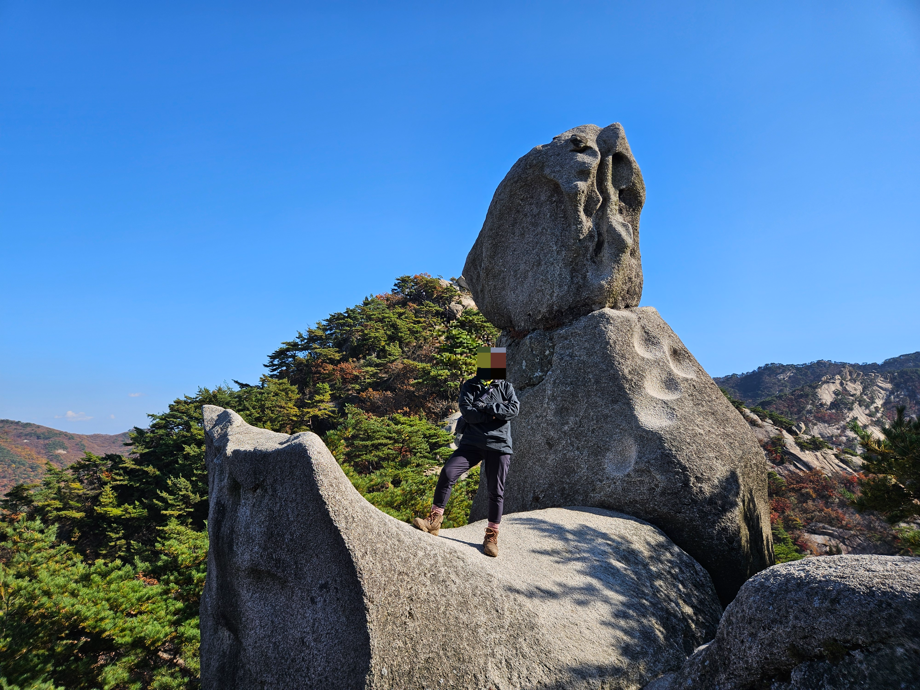 바위 위에 올라 문수봉 방면 일별하면서 잠시 숨을 고릅니다.