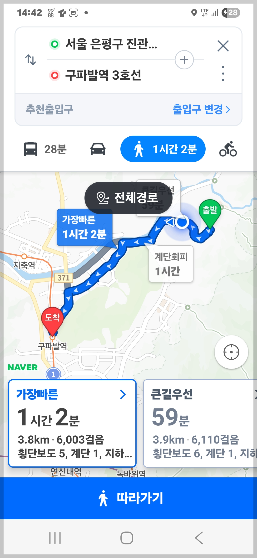 여기서부터 구파발역까지는 네이버지도의 안내를 따릅니다.