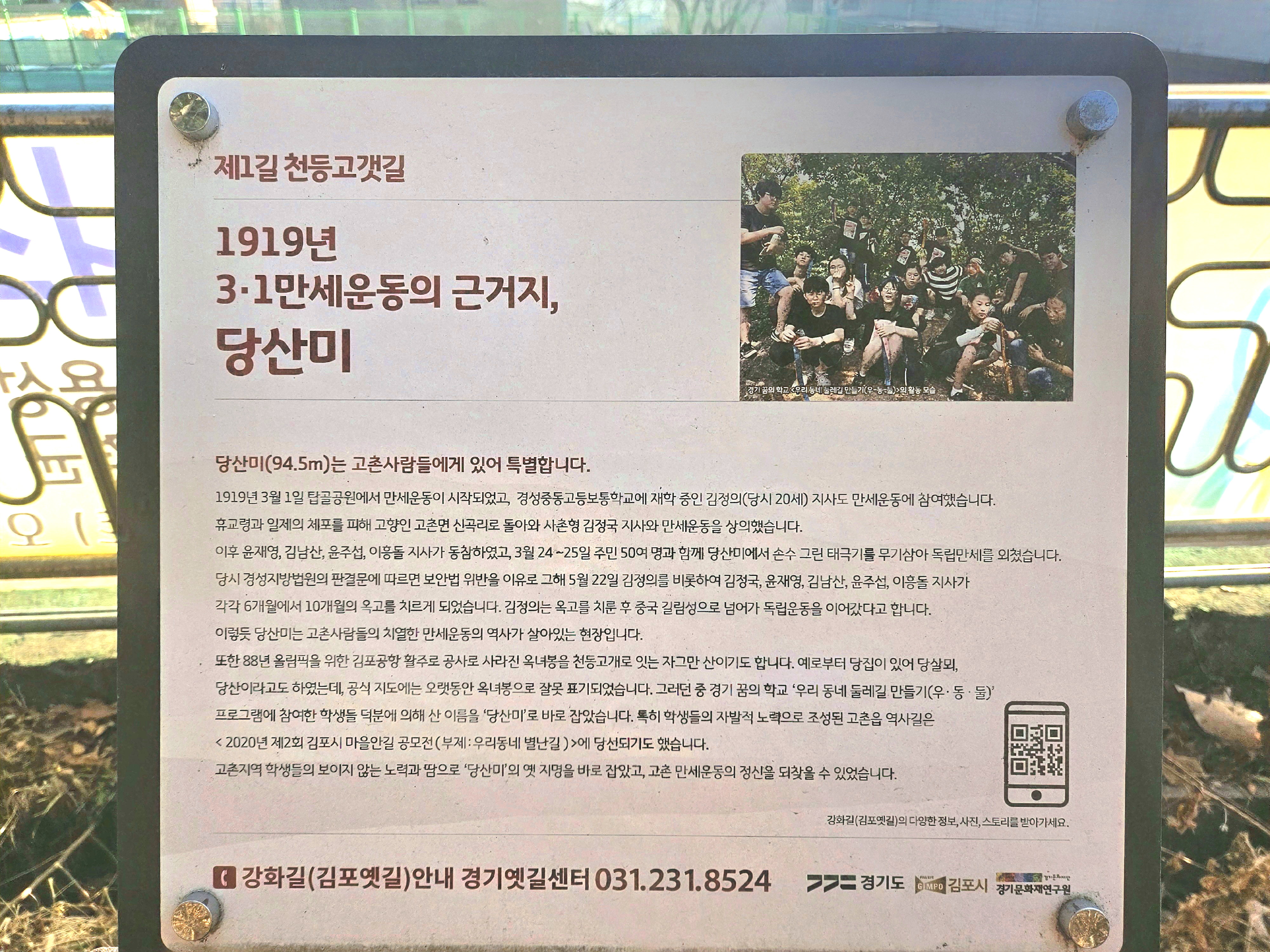 고촌 지역 사람들이 대한독립만세를 외쳤던 뜻깊은 장소라