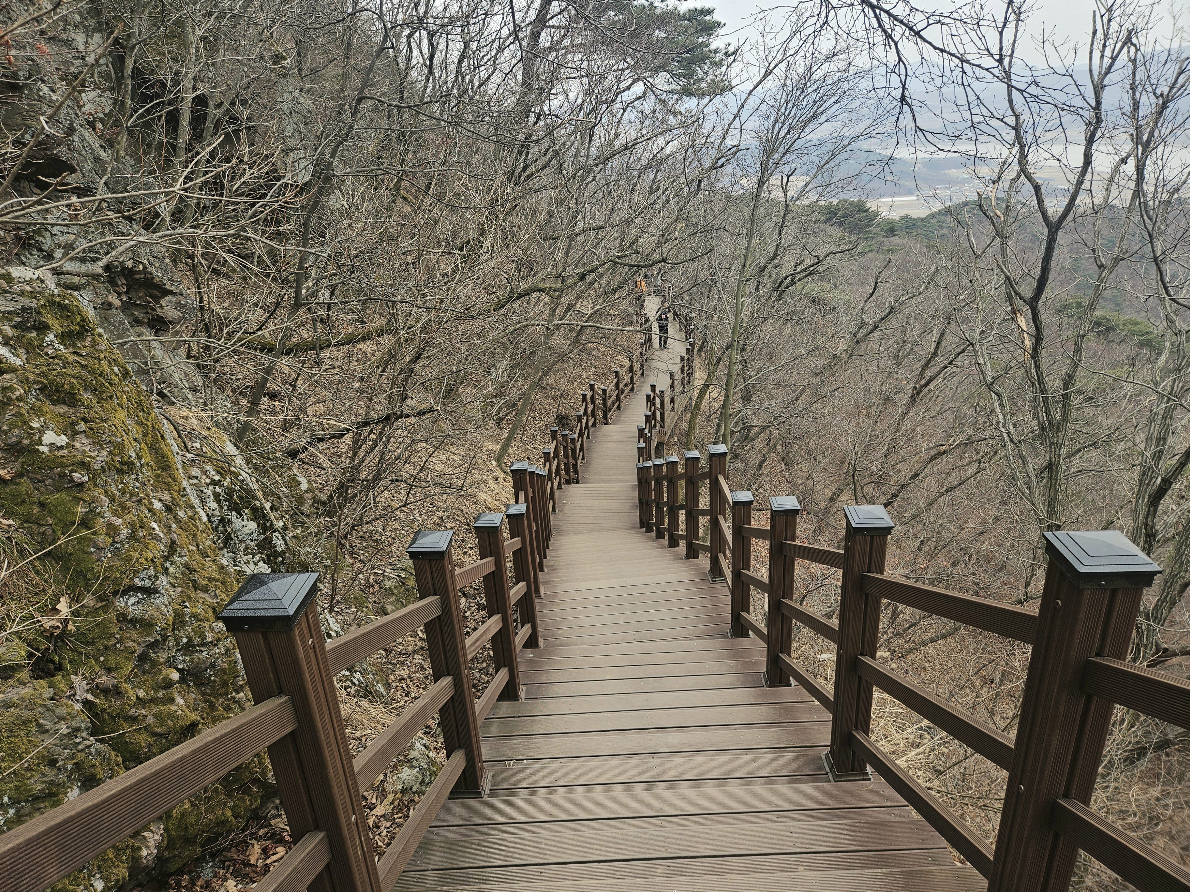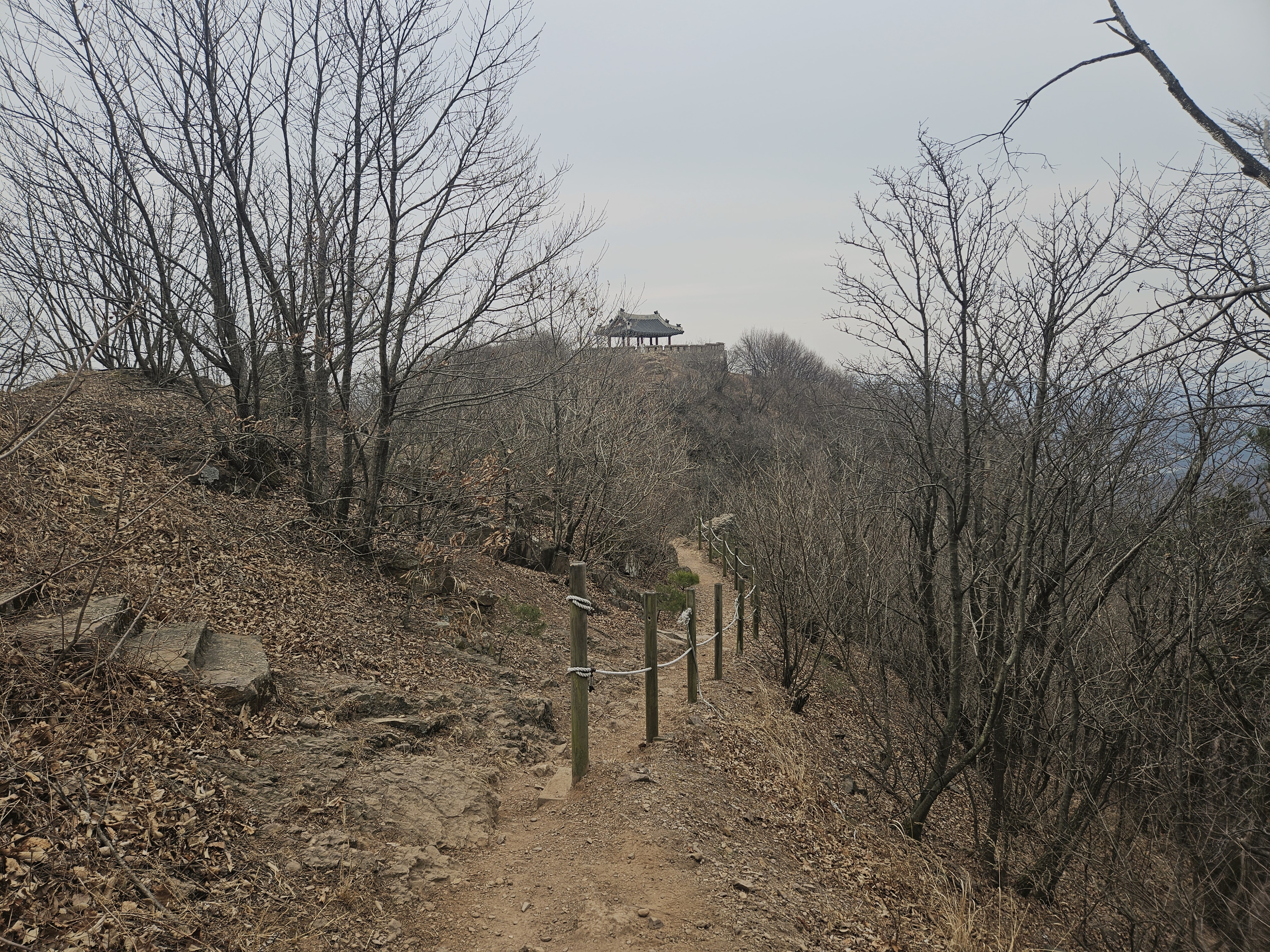올라올 때는 등산로를 따랐었는데 내려갈 때는 성곽 옆 길을