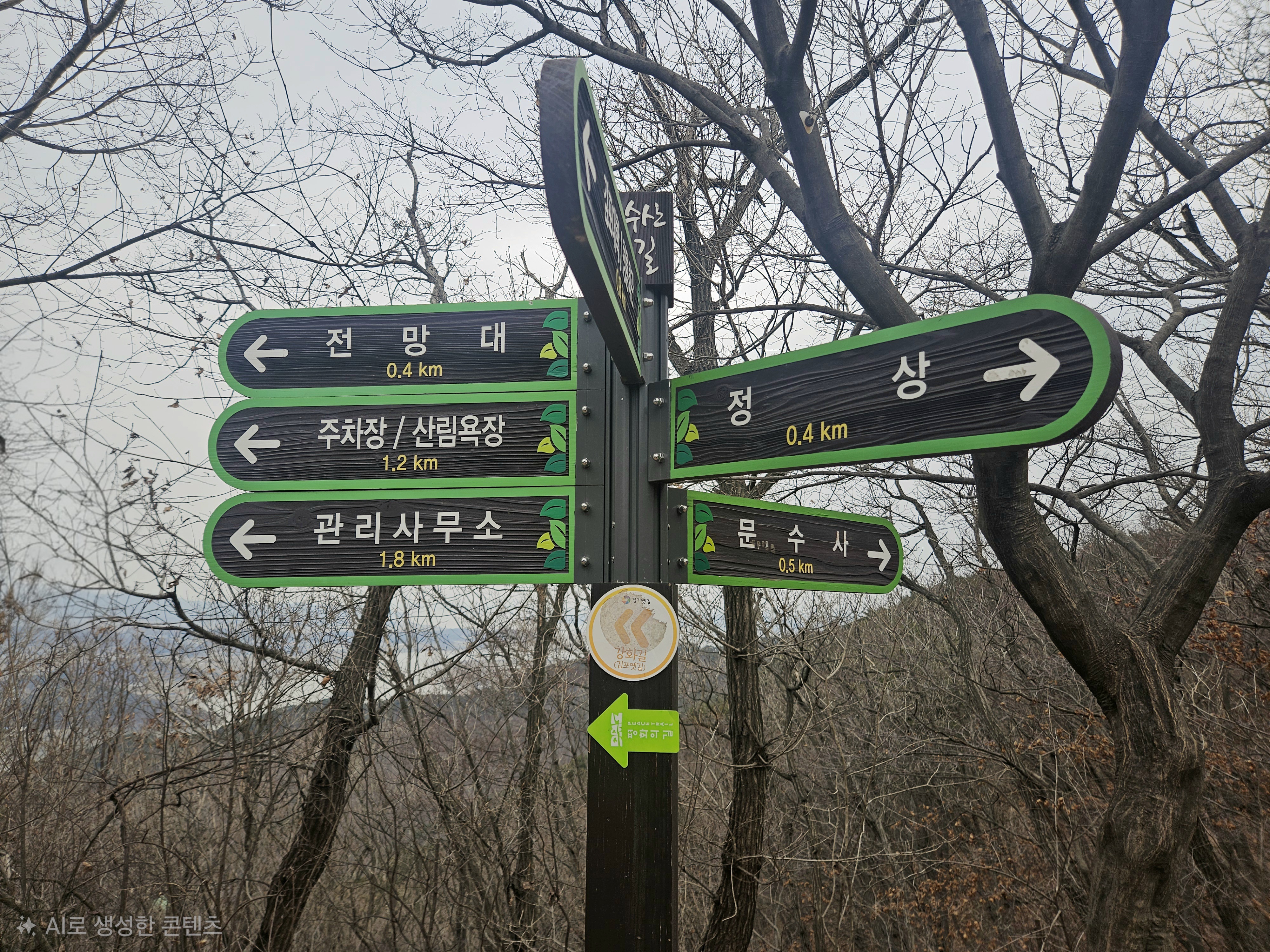 김포국제조각공원 끝에 있는 갈림길에서 문수산 정상 방향으로