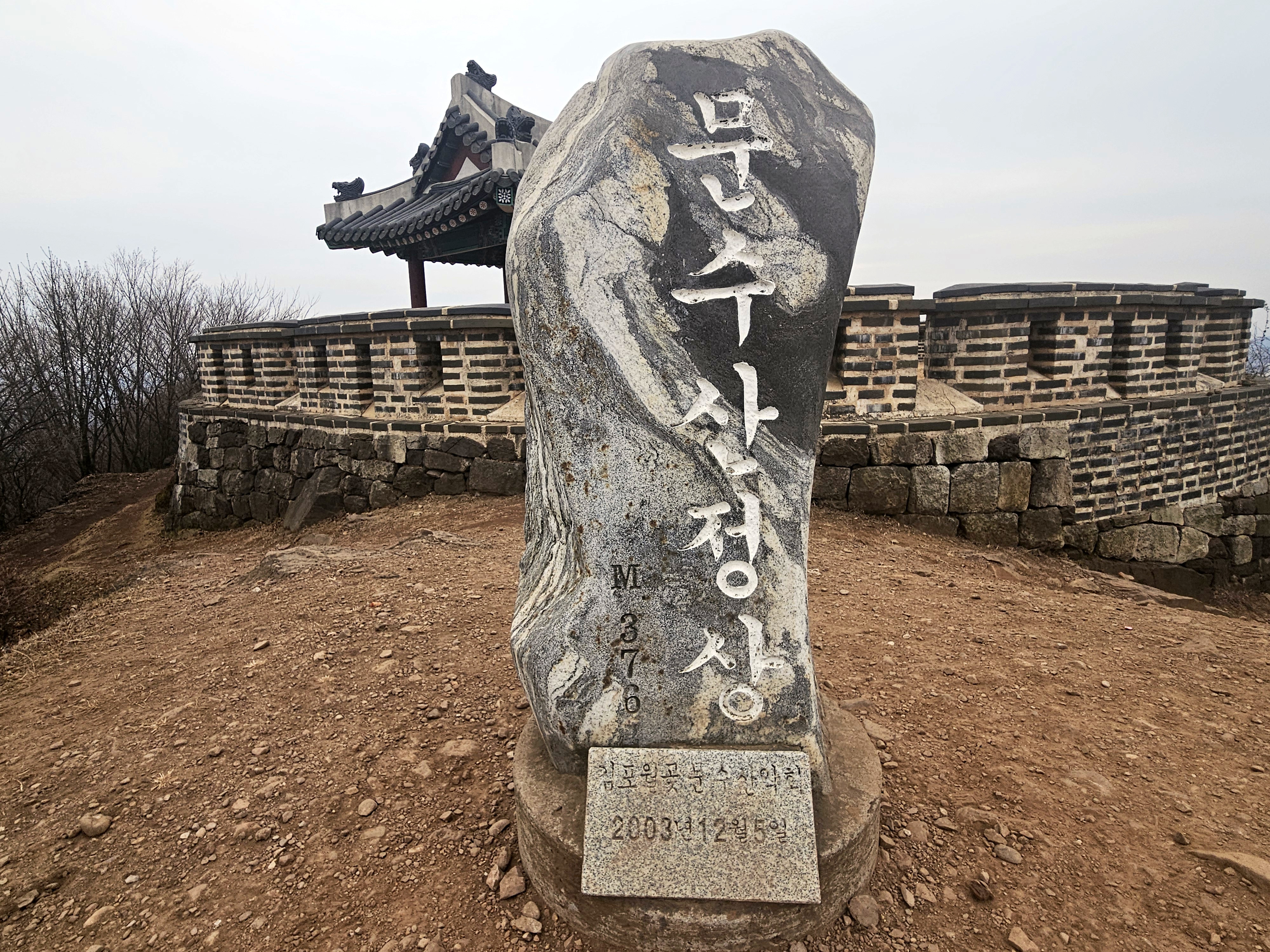 해발 376.1m인 문수산 정상에는 문수산성의 장대가 있습니다.