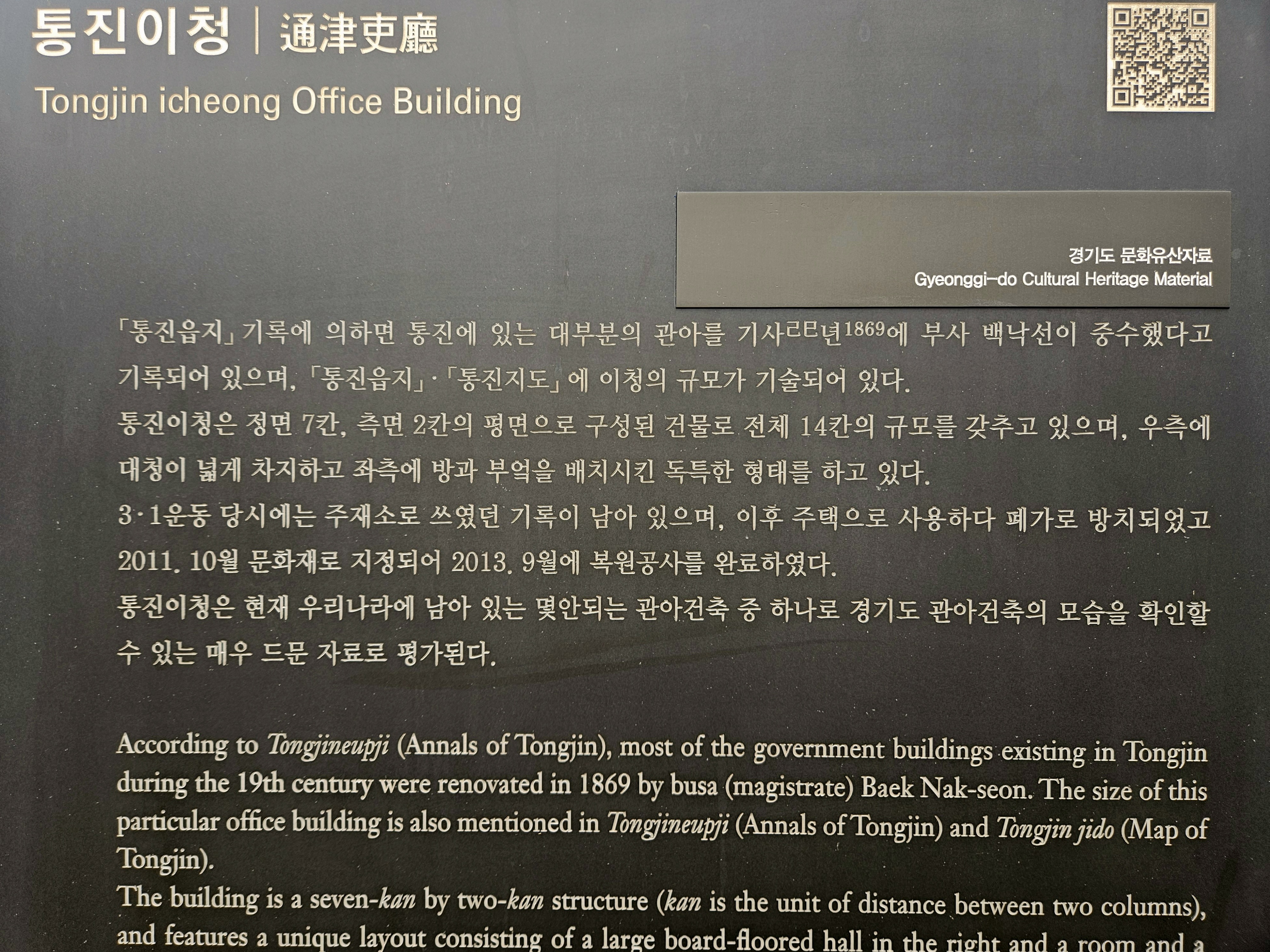 걷다 보면 조선시대의 관아였다던 통진이청이 나타납니다.