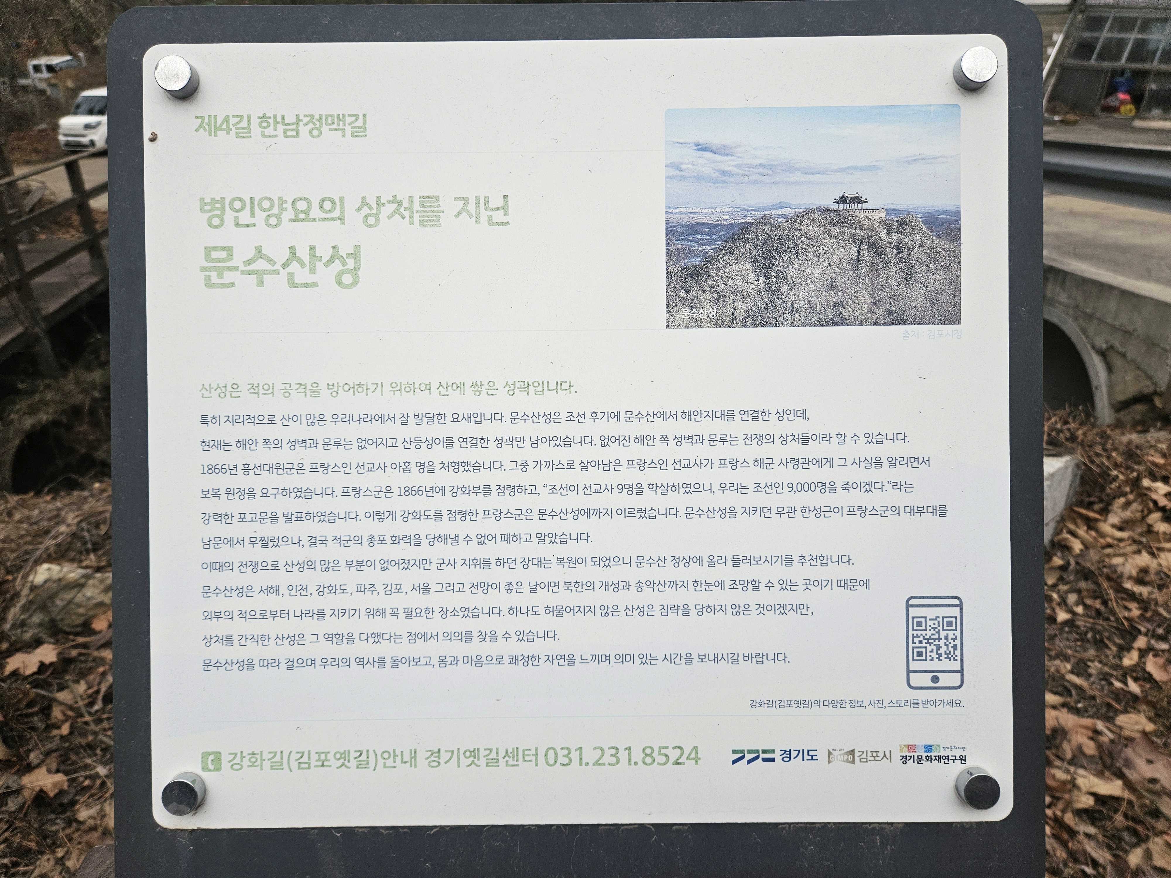 헬리포트 길체에 문수제단과 문수산성 안내문이 있습니다.