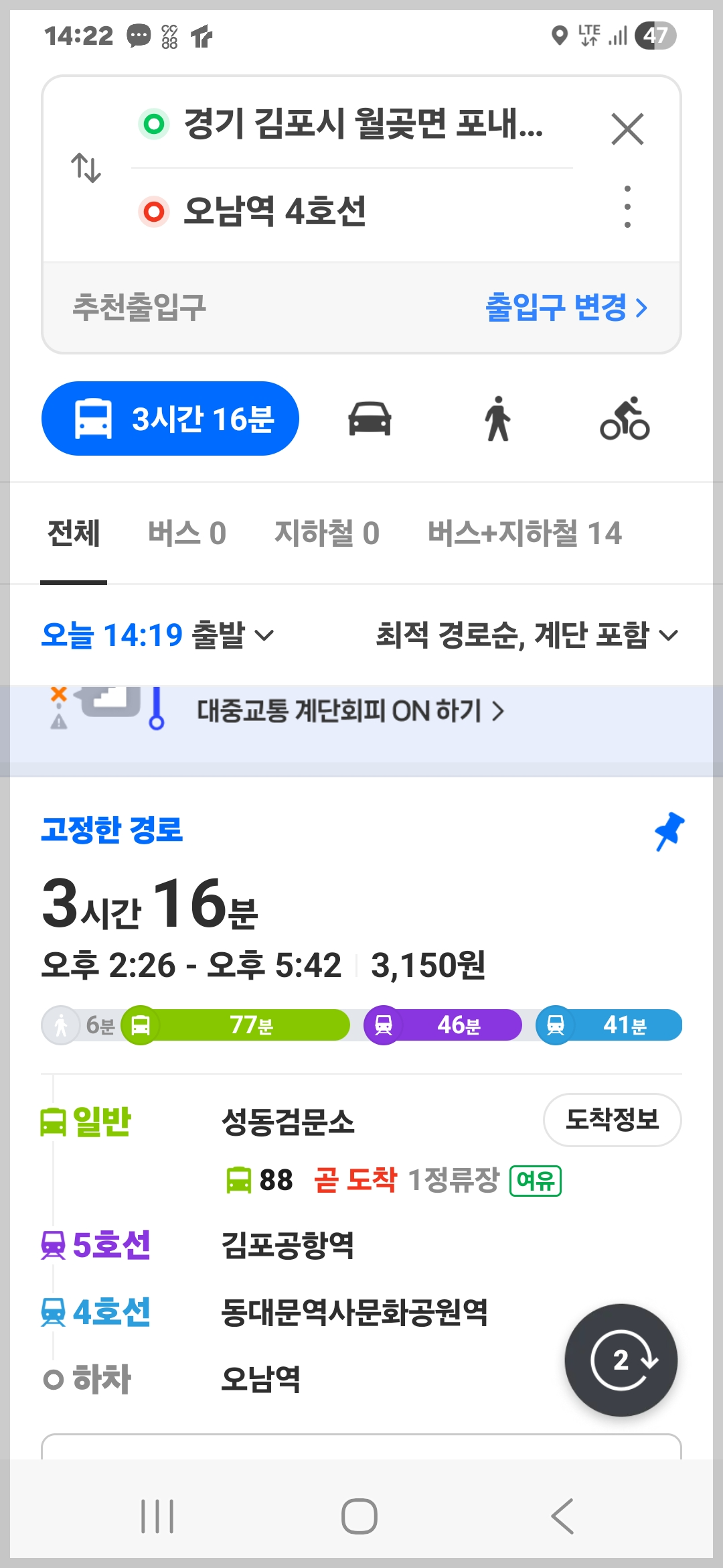 김포골드라인의 구래역으로 간 후 전철을 이용해 귀가할 겁니다.